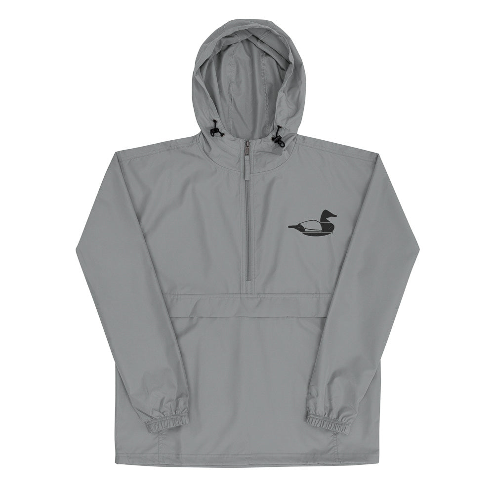 • 100% polyester micro poplin • Wind and rain resistant • Half zip pullover with a hood • Front kangaroo pocket • Packable in the zipped pouch pocket
